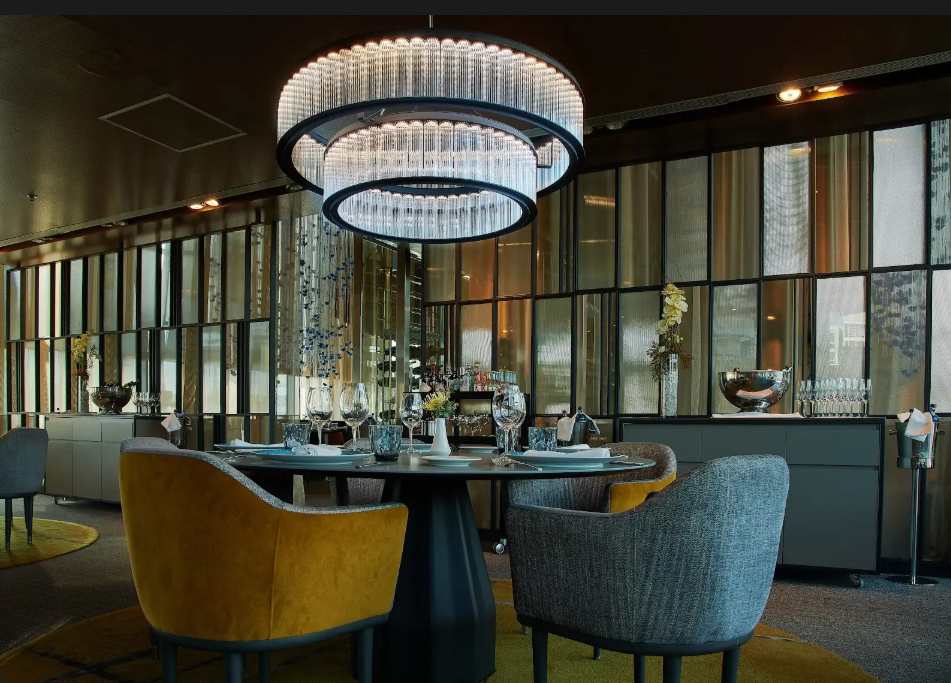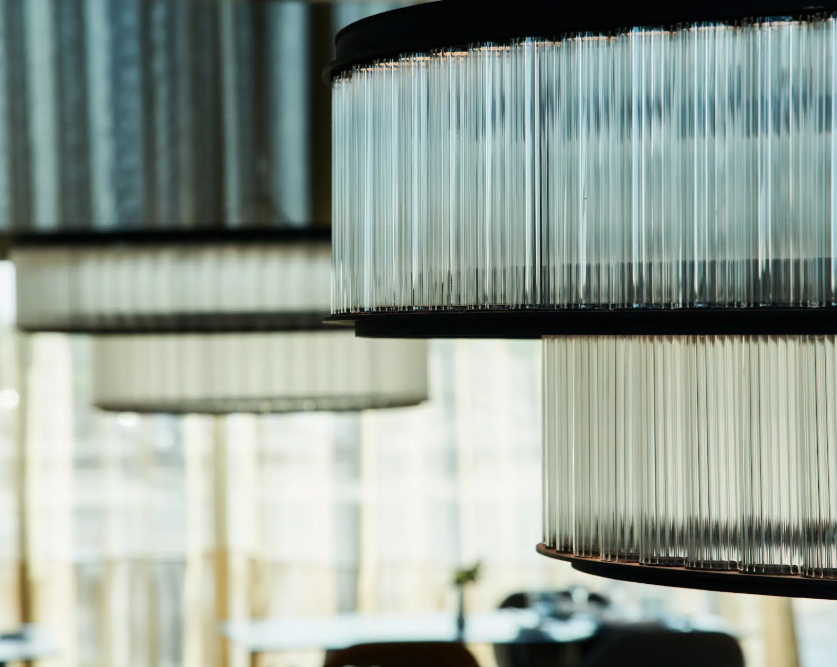 Pour finaliser l’agencement de l’éclairage à l’intérieur de l’hôtel, GCA Architects a conçu pour le restaurant Terrum des luminaires en verre qui n’ont laissé personne indifférent. Ce sont des luminaires géants avec 2 cylindres de verre qui éclairent et décorent le restaurant, donnant à l’espace une qualité digne de faire connaître aux convives la qualité de la nourriture qu’ils vont consommer.